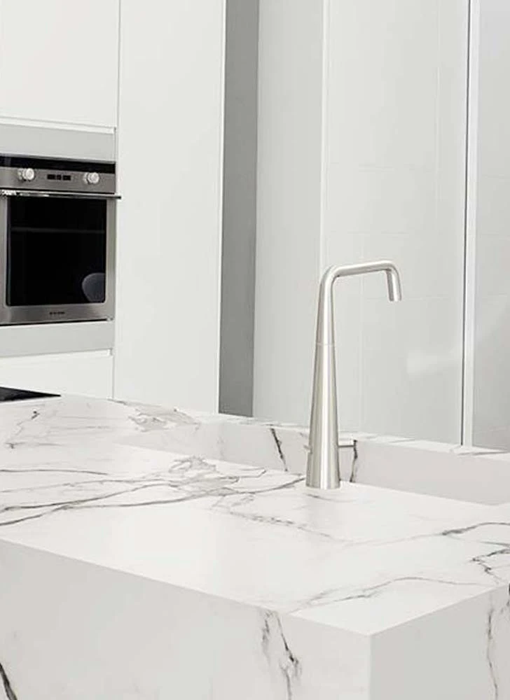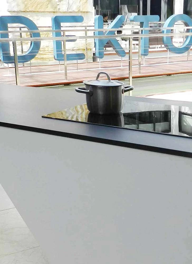 El Dekton está hecho de materiales totalmente naturales mezclados para darle sus propiedades únicas. Hecho de piedra, tiene un acabado premium pero evita muchas de las desventajas de los productos totalmente naturales. Dekton está compuesto por vidrio, porcelánico y cuarzo . Los fabricantes lo fabrican utilizando tecnología de partículas sinterizadas.