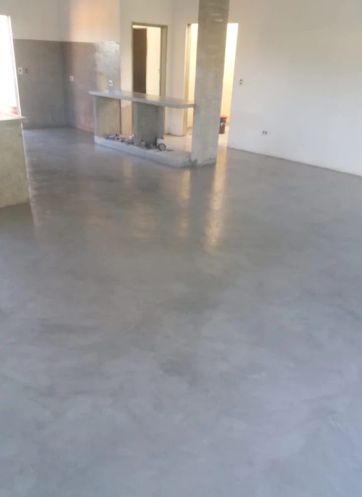 El microcemento alisado es un revestimiento de doble componente que se puede aplicar a pisos y paredes. Se compone de una mezcla de polvo de cemento, resinas sintéticas, cuarzos y un líquido, que forma una película de 2-3 mm sobre la superficie. El microcemento alisado es resistente al desgaste, la compresión y los rayos UV, y se puede aplicar a superficies existentes, incluso húmedas.